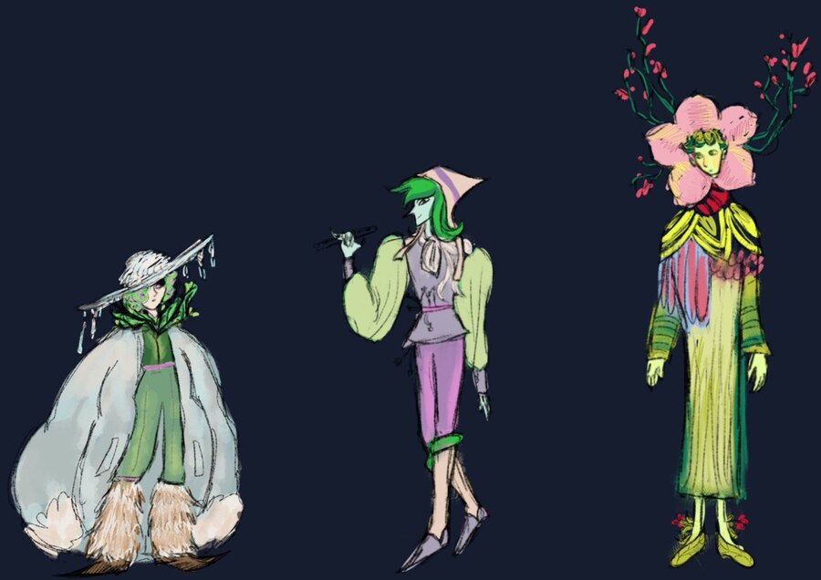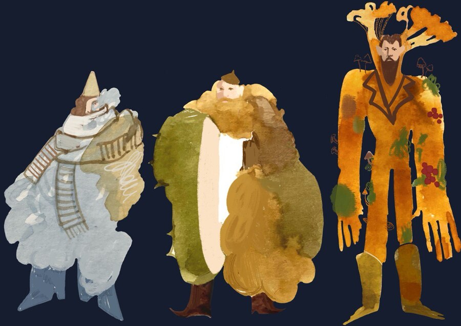 Команда художников занялась созданием образов Марушки, мачехи, Олены и 12 месяцев. Тогда мы заметили забавное совпадение: наша группа состоит из 12 человек, ровно по числу месяцев, так что каждый участник проекта смог придумать свой месяц, а художники привели эскизы в общий визуальный стиль.