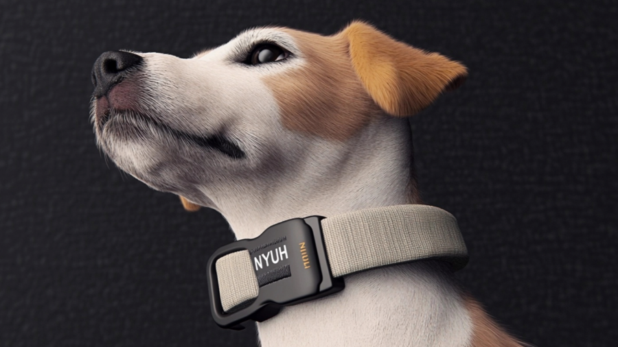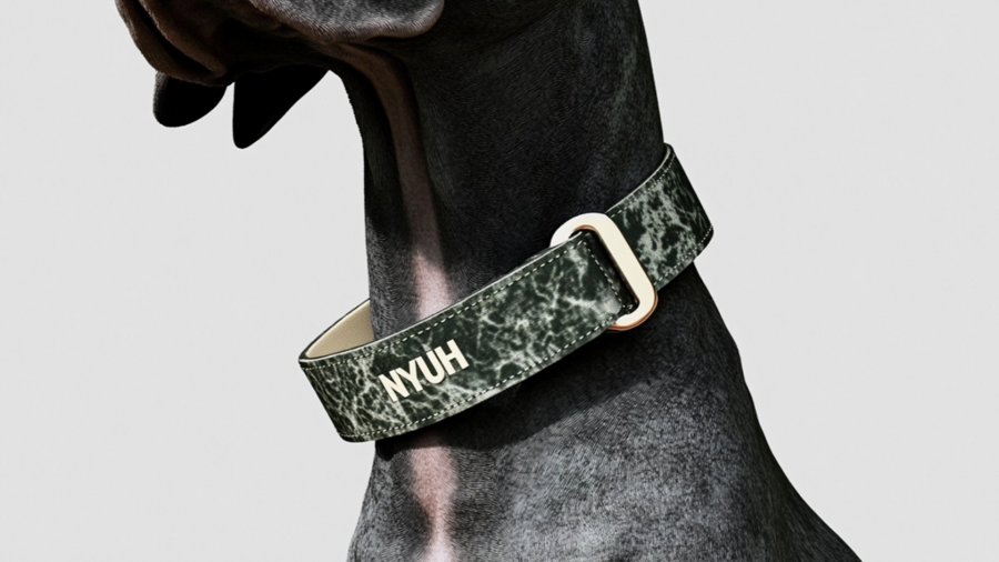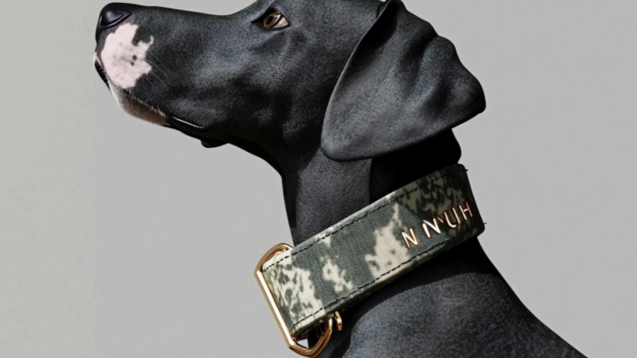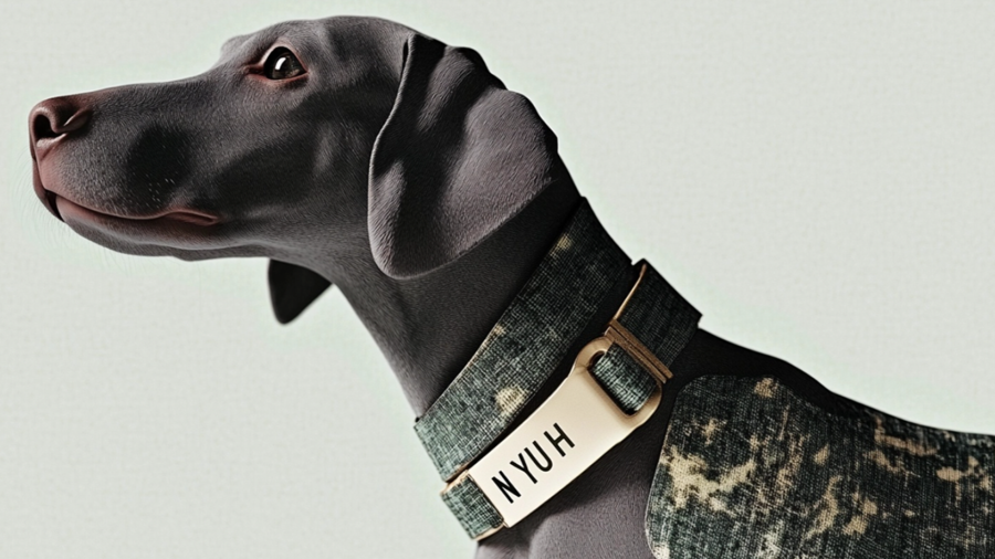 Промт: generate a billboard that depicts an advertising poster for a luxury brand of dog collars with the inscription «NYUH»