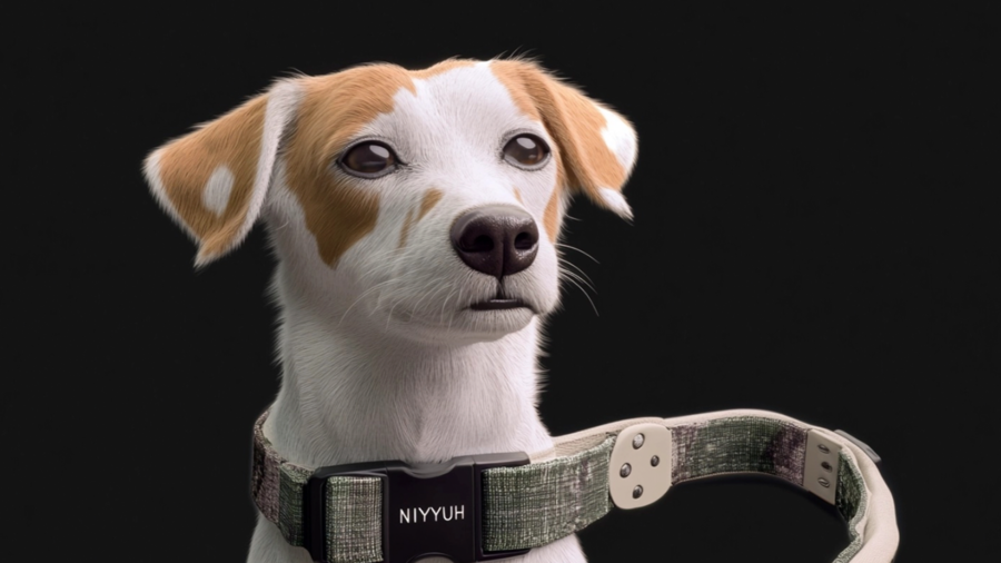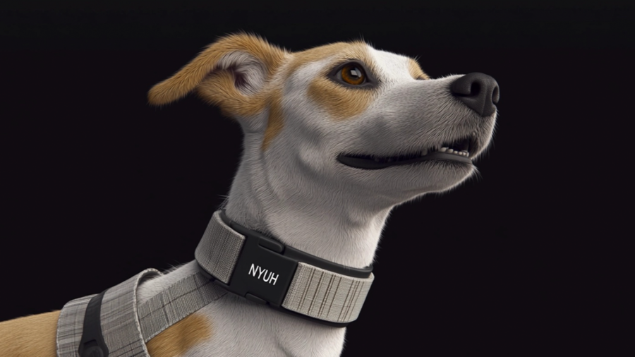 Промт: Realistic style render, create a collar for a dog on a solid black background. collar for a dog beige gray color, with «NYUH» embroidery, beautiful rendering in good lighting