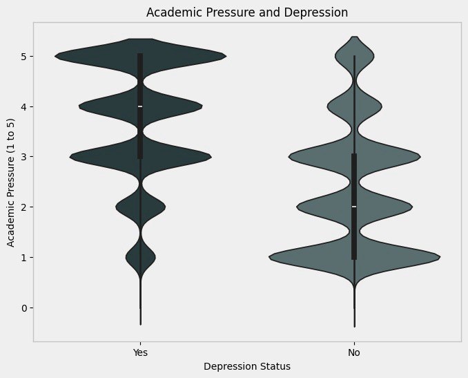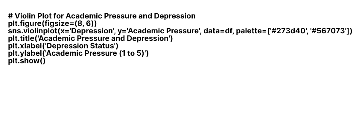 В этом скрипичном сюжете анализируется взаимосвязь между академическим давлением и статусом депрессии. Это дает представление о том, как различные уровни академического давления способствуют депрессии.