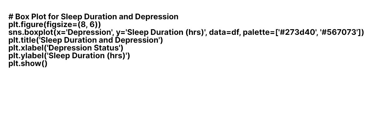 На этом квадратичном графике показано распределение продолжительности сна для студентов с депрессией и без нее. Это помогает проанализировать, коррелирует ли депривация сна с уровнем депрессии, и дает представление о том, как продолжительность сна варьируется у студентов с депрессией и без депрессии.