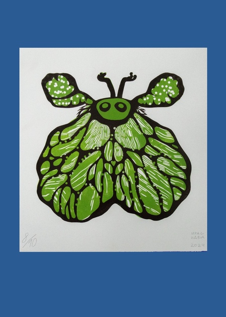 Проект «Метаморфоз» представляет собой серию тиражной графики, выполненной в технике высокой печати. В каждом отдельном тираже изображена одна и та же бабочка, но каждый раз в уникальной цветовой вариации. Эта работа становится изучением не только визуального восприятия, но и символом трансформации и изменений, свойственных как природе, так и человеческой жизни.