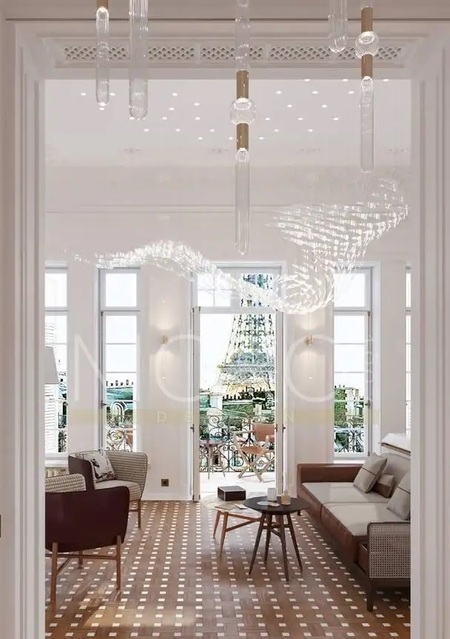 Место: Франция Город: Париж Площадь: 65 м² Год: 2019 Дизайн-проект квартиры в самом сердце Франции, в Париже. Из окон этой квартиры открывается вид на Эйфелеву башню. Заказчик живет между Италией и Францией, куда постоянно приезжает по работе.