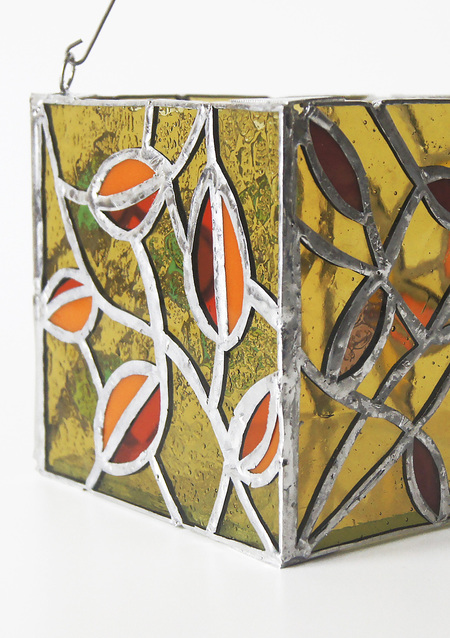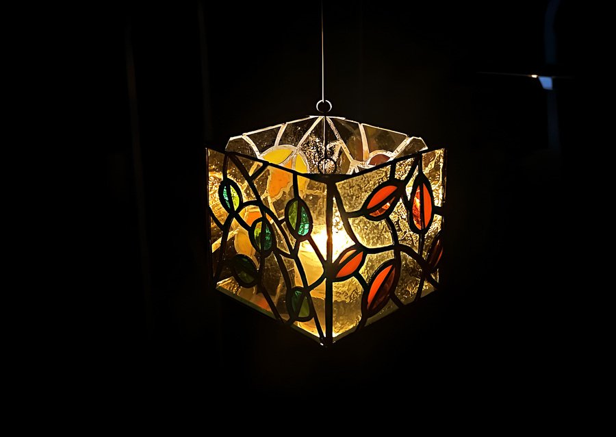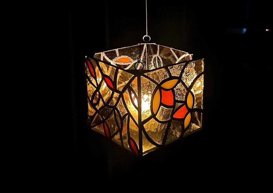 На занятиях вариатива «Творческая мастерская по мозаике и витражу» я сделала 2 витража: подсвечник и гирлянду. «Листья» — орнаментальный подвесной подсвечник, а «Сказка Сказок» — гирлянда, вдохновленная кадрами из одноименного мультфильма Юрия Норштейна.