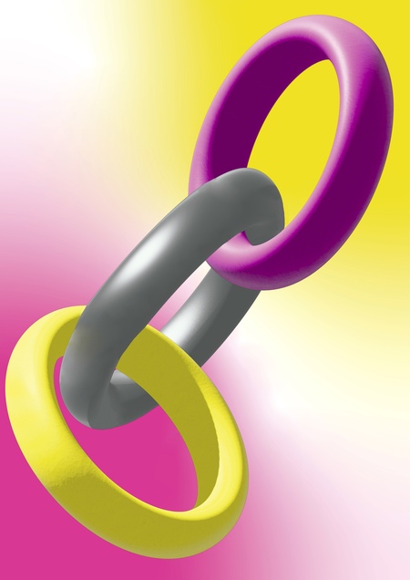 Три сцепленных кольца символизируют переплетение жизненных судеб и времен. Ядовито-желтое кольцо представляет текущую жизнь, полную вызовов и непредсказуемости. Серебристое кольцо — это прошлое, с его опытом, мудростью и ошибками. Ядовито-розовое кольцо — будущее, неизвестное и полное возможностей. Кольца прочно сцеплены между собой — это показывает неразрывную связь между прошлым, настоящим и будущим.