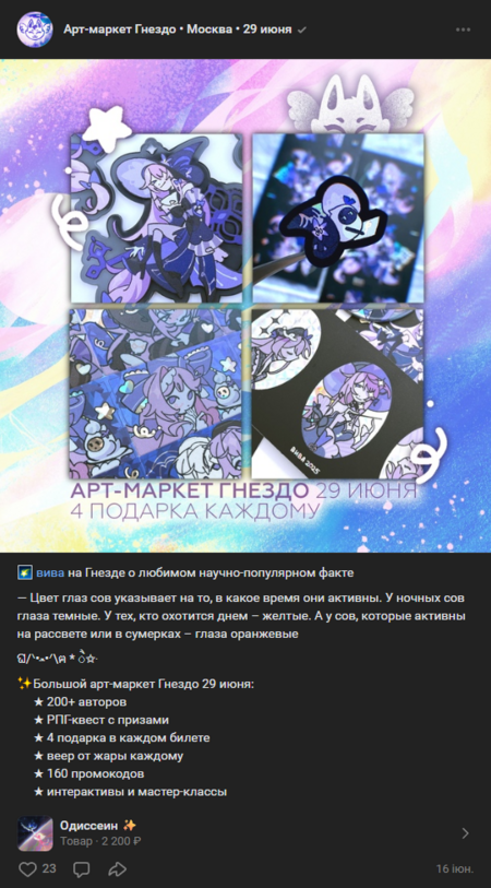 Пост Art Inside сразу же бросается в глаза, начинается с изображения, очень тезисный