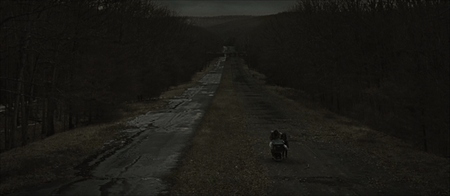 Дорога как визуальный мотив подчеркивает монотонность и однообразие существования персонажей, их постоянное движение в попытках найти лучшее место или хотя бы избежать худшего. Она также отражает потерю центра, ориентиров и стабильности в мире, где все известные ориентиры разрушены. Вдобавок, бесконечная дорога вызывает чувство тревоги и неопределенности, что является ключевым элементом постапокалиптического нарратива, создавая напряженную и загадочную атмосферу, которая заставляет зрителя постоянно ожидать неизвестности.
