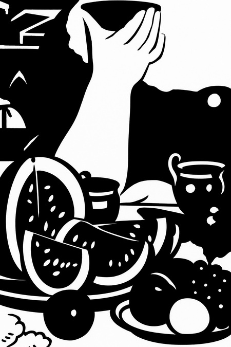 За основу беру простые, лаконичные формы, близкие к традиционной русской утвари, и наполняю с помощью паттернов и силуэтов, заимствованных из его картин.