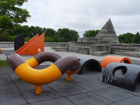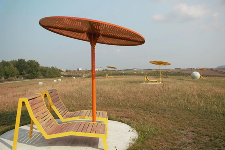 Архитекторы этого парка, реализованного на месте масштабной свалки, занимавшей 150 га, нашли хорошее решение для газовых скважин, которые часто оставляются открытыми для посетителей в других парках на стабилизированных мусорных полигонах. Шары, рассыпанные по всему периметру, привлекают к себе внимание и создают новую идентичность места, не игнорирующую старую. Люди называют его «Инопланетным парком».