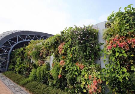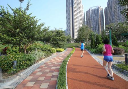 Jordan Valley Park: беговая дорожка (слева), вертикальные сады (справа). Гонконг, Китай. 2010