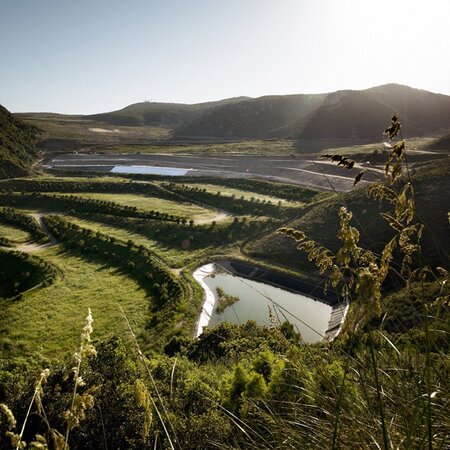 Природный парк Garraf Massif: габион из содержимого свалки (слева), накопительный пруд для дренажных вод (справа). Барселона, Испания. 2008