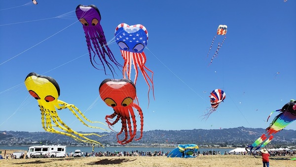 Парк Сесара Чавеса: фестиваль воздушных змеев (слева), Мемориал Сесара Чавеса / солнечные часы (справа). John Northmore Roberts & Associates. Беркли, США. 1997