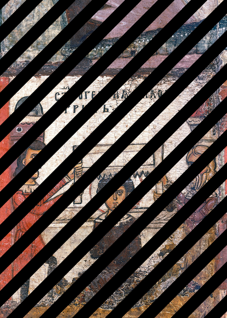 Икона, которую мы выбрали, житийная, и это делает нас обязанными хотя бы бегло поговорить о житии Георгия Победоносца. Текстов о деяниях этого святого великое множество. Только в российских библиотеках их сотни. Византийских же, греческих, латинских, славянских — ещё больше. Тут и классические жития, и легенды, духовные стихи, сказания, поэмы, в частности, весьма известные Рейнбота фон Дорна и Люзарша. Надо сказать, что между собой они находятся в чрезвычайно сложной связи, бесконечно обмениваясь друг с другом разными деталями и эпизодами; это некая община святых Георгиев, каждый из которых крепко держится за своего сродственника. Перечислю, что есть на нашей большой алтарной иконе и что, несмотря на четырнадцать клейм, идущих по её периметру, иконописец не изобразил.