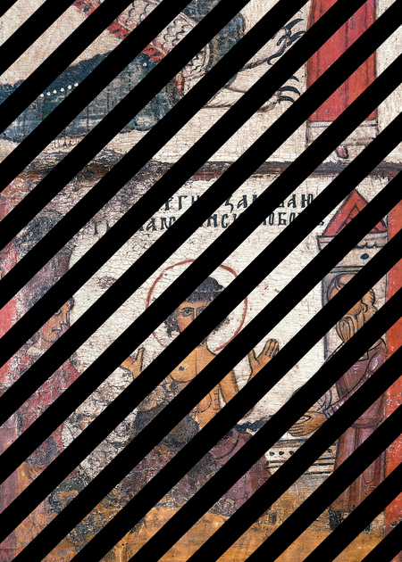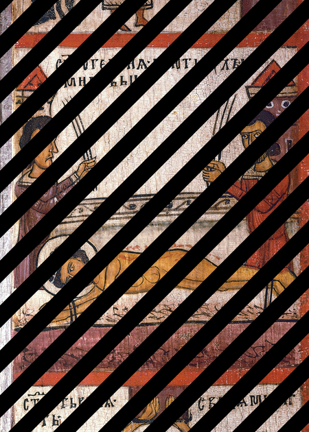 Чудо Георгия о змие, с житием. Первая половина XIV в. Новгород. Дерево, паволока, левкас, темпера, 86×3×2,5. Государственный Русский музей, Санкт-Петербург