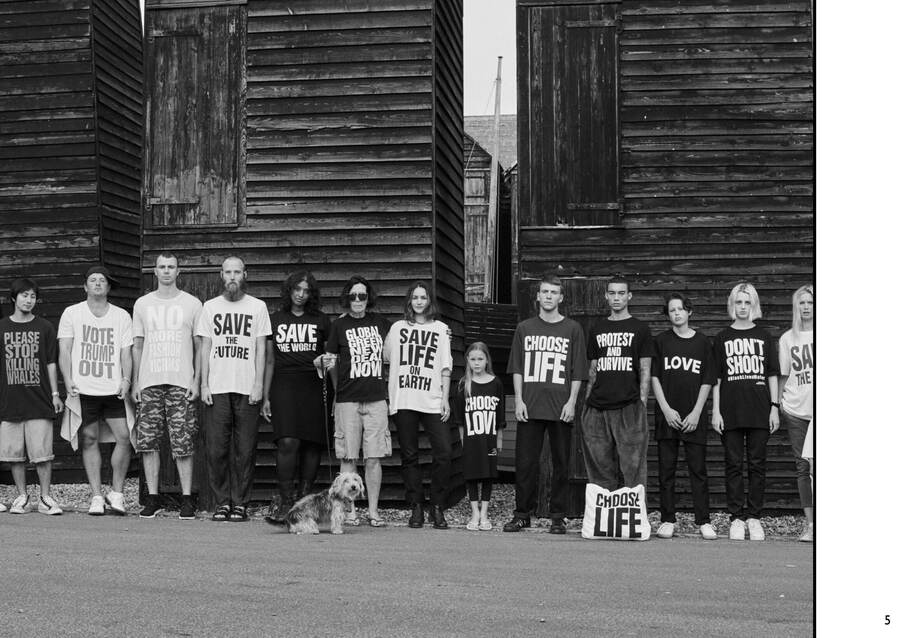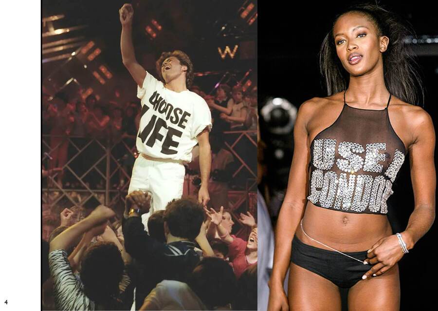 Британский дизайнер Кэтрин Хэмнет начала свою карьеру с обыкновенных футболок, на которых она печатала различные бунтарские лозунги, отражающие взгляды на политические, экономические и экологические проблемы нашего мира.
