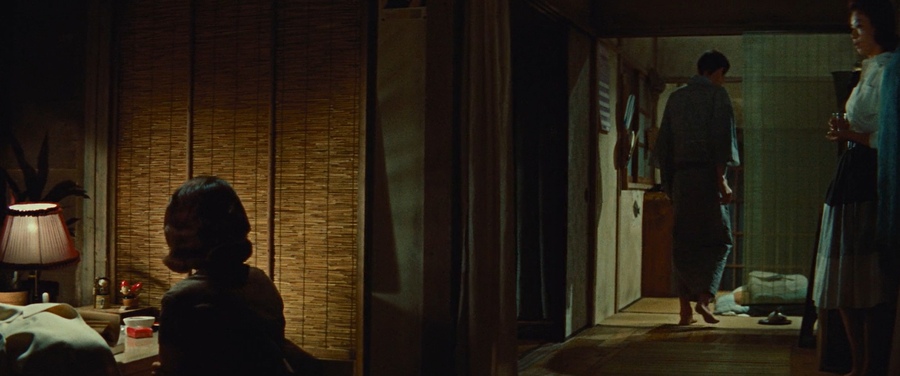 Одзу часто выстраивает кадры так, чтобы композицию можно было выстроить по сетке. Это подчеркивает статичность, которая характерна для его картин.
