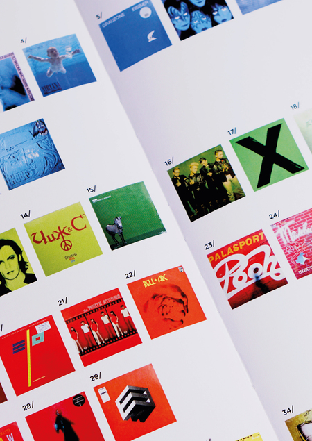 В каталоге представлены обложки виниловых альбомов, в дизайне которых используется главенствующий цвет: синий, красный, зеленый, жёлтый.