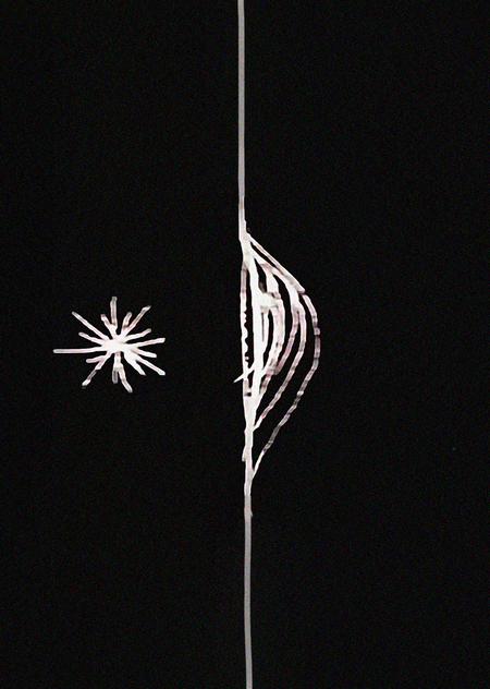 Аморфные точки ловко осваивают пространство экрана и носятся по нему, исчезая или разбиваясь, превращаясь в новые формы. Своим динамичным движением «плоские» точки создают впечатление трёхмерного пространства.