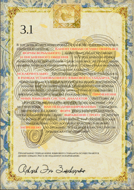 Изучение различий оформления привело к вычурности адского контракта и лаконичности личных заметок игрока. Документы содержат элементы реальных прототипов с налётом винтажных стилей (в частности, арт-деко). Часть информации контракта скрыта, что намекает на возможность обмана. Реалистичные печати, кляксы и подписи можно увидеть во внутриигровом контракте, записной книжке и даже в меню.