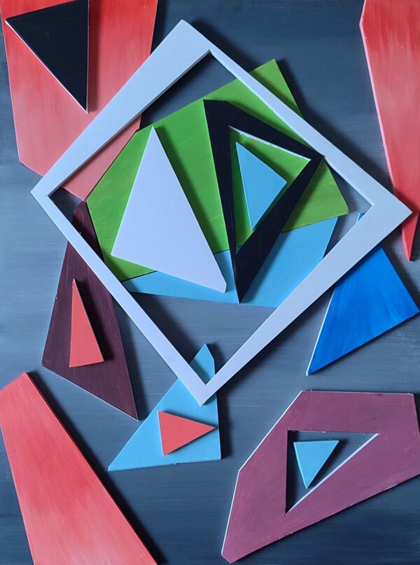 С Появлением цвета резкие, яркие, контрастные отношения меняют восприятие и начинается игра оттенков, композиции обретают другой характер и оставляют впечатление более броское. Интенсивный цвет берет на себя все внимание. Я решила экспериментировать с острыми формами и различными цветовыми отношениями так же чтобы исследовать игру теней в разной цветовой гамме