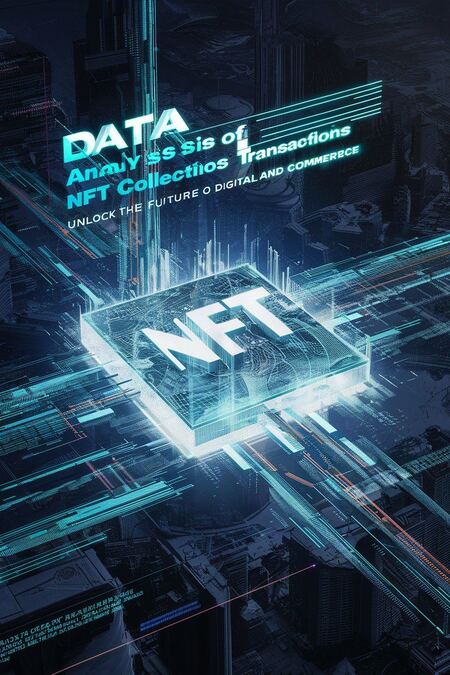 Промт (промт) A captivating cinematic poster design featuring a futuristic cityscape, with a glowing, digital NFT collection marketplace at its center. Intricate data lines and code-like patterns radiate from the NFT marketplace, representing the vast transactions and analysis that occur within. A sleek, holographic title, «Data Analysis of NFT Collections Transactions,» stands prominently at the top, with a tagline, «Unlock the Future of Digital Art and Commerce,» below. The overall feel of the poster is high-energy and cutting-edge, reflecting the innovative nature of NFTs and their impact on the art and commerce world., poster, photo, cinematic, product