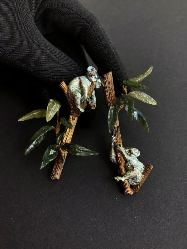 Серьги из титана на английском замке с коалами на ветках эвкалипта.