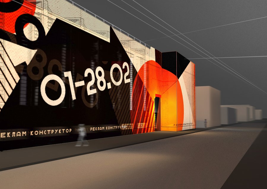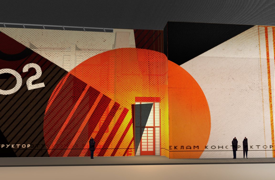 Ставилась задача создать легко возводимую конструкцию, сконцентрировав внимание на входе. Простота и яркость одни из ведущих правил конструктивизма