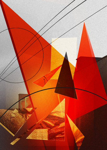 Ключевая фраза-"реклам конструктор». Любая конструкция начинается с эскиза или схемы. Важным элементом композиции здесь являются провода. Сочетание больших фигур с легкими линиями. Тяжелая конструкция фасада, которую поддерживают провода, создает баланс между пятном и линией, конструкцией и эскизом