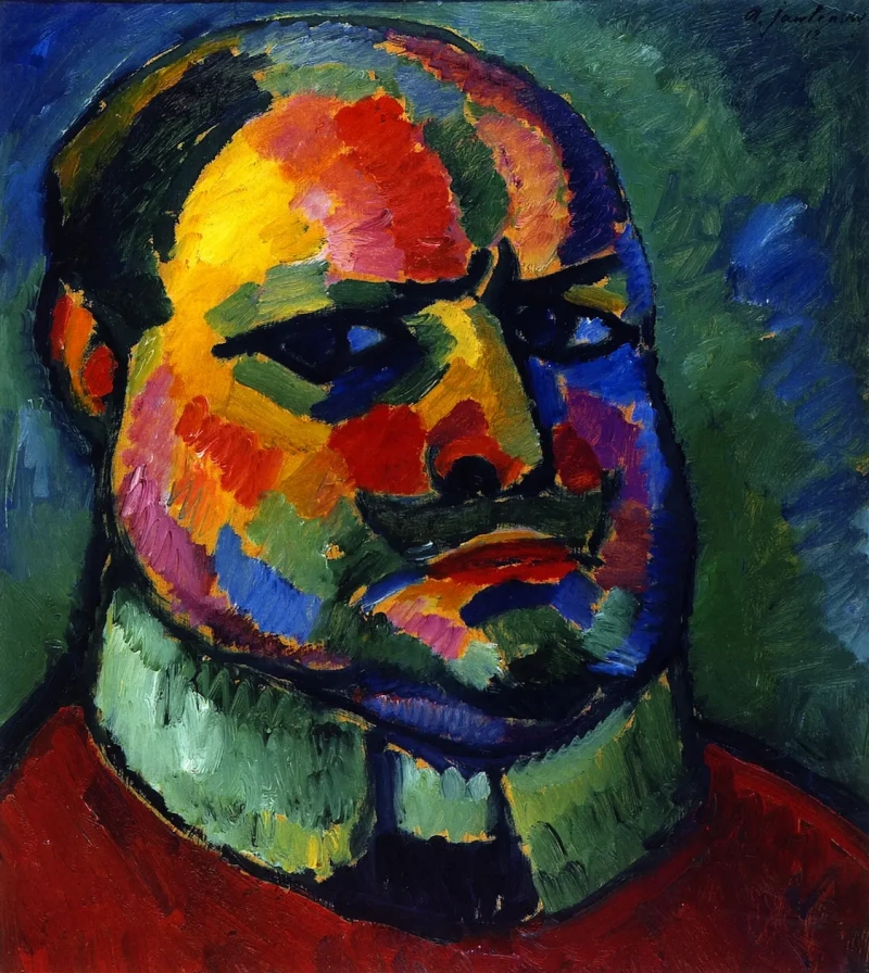 Цветовой акцент в экспрессионизме часто направлен на выделение деталей, имеющих психологическое значение. Например, ярко-красный нос или синева под глазами могут говорить о болезни, зависимости или тревоге. В этих автопортретах цветовые пятна становятся средствами психологического анализа. И у Явленского, и у Верёвкиной цвет выходит за рамки натурного, приобретая символическое значение. У Явленского лицо передано через насыщенные и неестественные оттенки — фиолетовый, зелёный, охру — создающие эффект внутренней сдержанности и духовного напряжения. У Верёвкиной цвет более разрежен, но так же несёт в себе экспрессию: красные и синие акценты тревожат, разрушая привычную структуру лица. В обоих случаях цвет не описывает внешность, а транслирует характер, эмоцию, состояние — почти как диагноз.