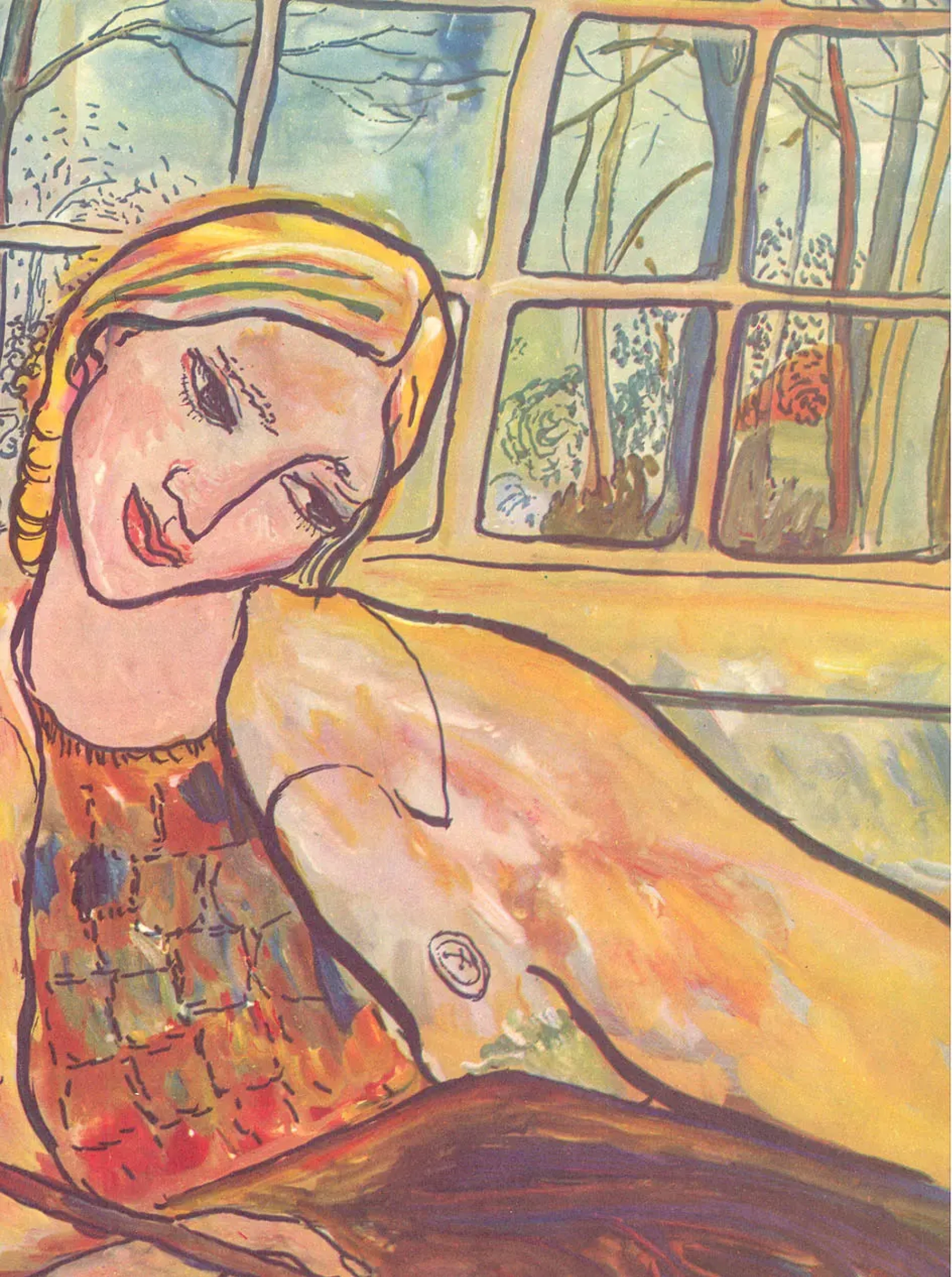 У Сутина цвет — это не просто живопись, а почти физическое проявление страдания. Его мазки тяжеловесны, фон и тело часто сливаются в единое органическое напряжённое пространство, где фигура почти растворяется.