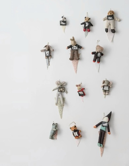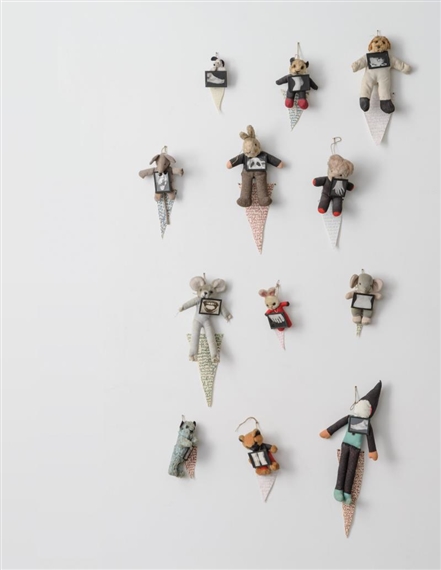 Подобный эффект усиливается в «Мои маленькие изображения», где кукольные изображения и текстильные элементы составляют серию немых портретов. Здесь цвет лишён живописной пышности — он строго функционален, серый, приглушённый, превращая фигуры в тени самих себя. Через монохром Мессажер выражает изоляцию, уязвимость и фрагментарность идентичности — ключевые черты экспрессионистской интонации конца XX века.
