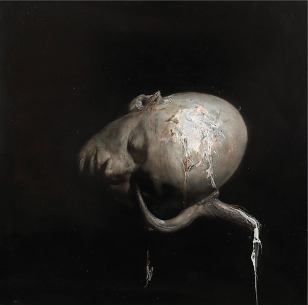 Работы Никола Самори продолжают экспрессионистскую традицию, где цвет используется не только как эстетический элемент, но и как психофизиологический маркер. Его фигуры словно выгорели изнутри: лица стираются, искажаются или будто разрушены под напором внутренних состояний. В «Голова со слезой» слеза — единственный живой акцент на разрушенной плоти — становится визуальным диагнозом боли, утраты, внутреннего надлома.
