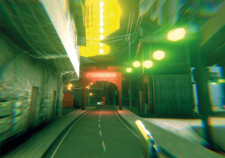 realistic, style by wong kar wai screenshot of FPS game, a low-angle shot, hongkong night port: 2, green and red light, motion blur, double exposure, fog --ar 16:9 --no people