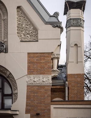 На фасаде можно увидеть лепнину в виде каштана — символа целомудрия и благосостояния, маков — образов вечной красоты, и даже листьев конопли — символа судьбы.