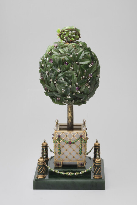 Яйцо лаврового дерева, 1911 и Яйцо Корзина цветов, 1901.