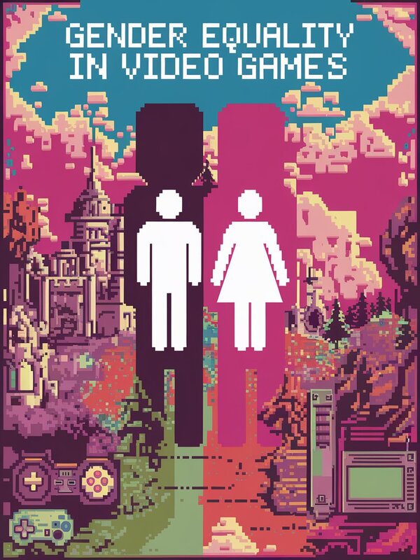 Источники картинок: Все иллюстрации сгенерированы про помощи Ideogram.ai Промпт: abstract picture on the topic of gender equality in video games