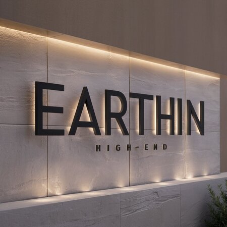 A clean, minimalistic typographic logo for a restaurant named 'Earthin'. The logo features a modern, geometric sans-serif font with subtle modifications to make it unique and recognizable. Incorporate a small element inspired by the texture or shape of a stone into one of the letters (e.g., the dot of an 'i' resembling a rounded stone). The design is monochrome, in black and white, suitable for vector format, highly scalable and timeless. Style: modern, clean, geometric, professional. --v 5 --q 2 --ar 1:1