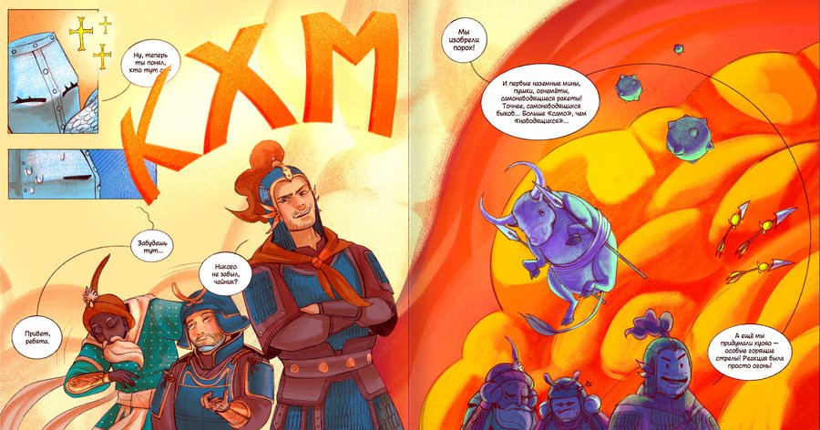 Нон-фикшн комикс об истории оружия, знакомящий читателя с необычными оружейными изобретениями разных эпох с помощью оживших персонажей компьютерной игры, вступающих друг с другом в состязание по крутости.