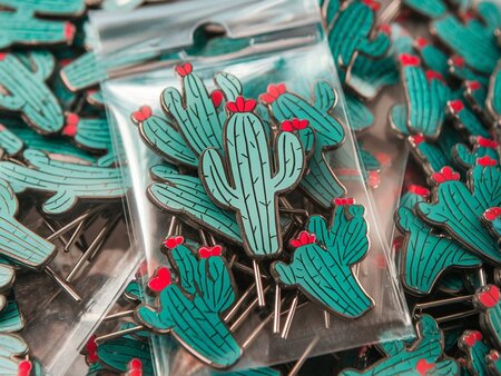 (1) /imagine prompt: iron pins, in the package, must be made of metal, it is clear that this is a badge, the pins must be in the shape of cacti