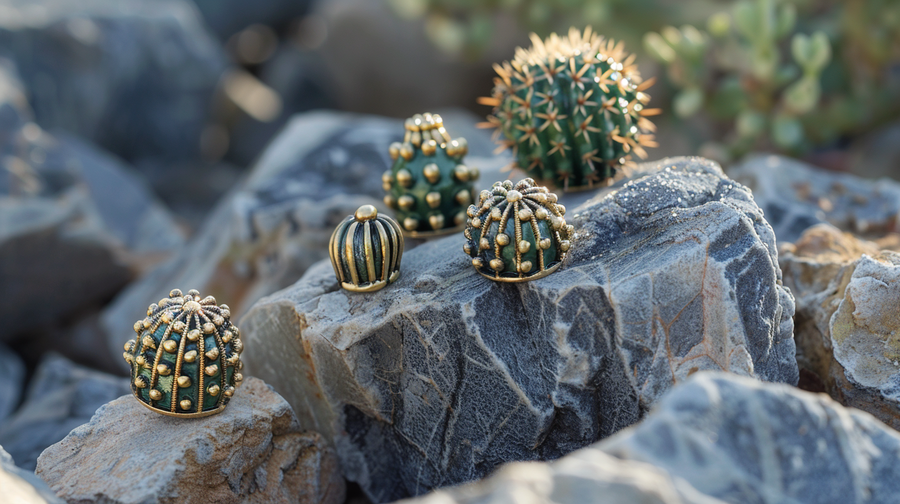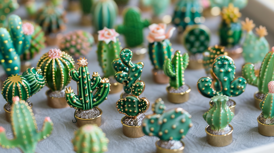 /imagine prompt: iron figurines, must be made of metal, the figurines must be in the shape of cacti --ar 16:9