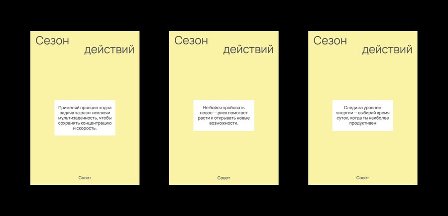 Сезон действий Человек выходит из зоны комфорта, и активно меняет свою жизнь.