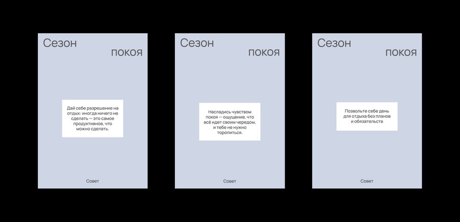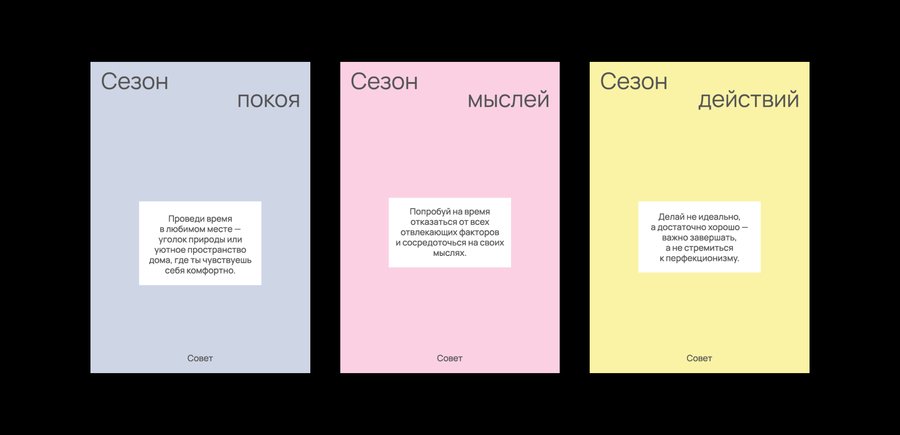 Календарь помогает человеку прислушиваться к своим внутренним ритмам и настроению, предлагая ориентироваться на них, а не на внешние дедлайны.