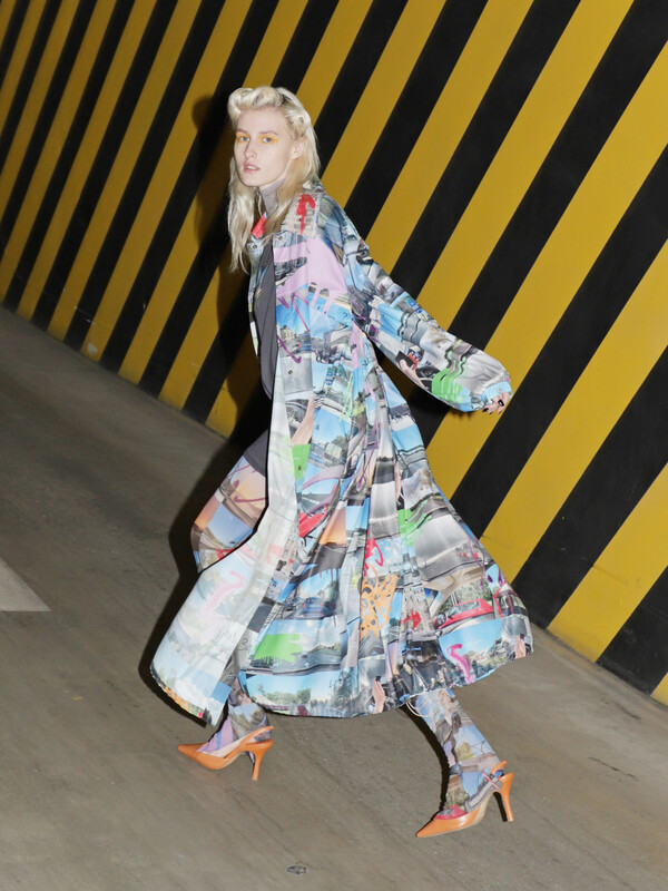 «Виртуальная презентация коллекции бренда OLA OLA светлая и легкая. Модель демонстрирует образы, вдохновленные контрастным Лондоном, отсюда и появляются многослойность и архитектурность. Главным аксессуаром этой коллекции становятся воротнички, созданные из разных материалов, а главным узором — цветы, изображенные как принт, вышивка или пайеточный застил».