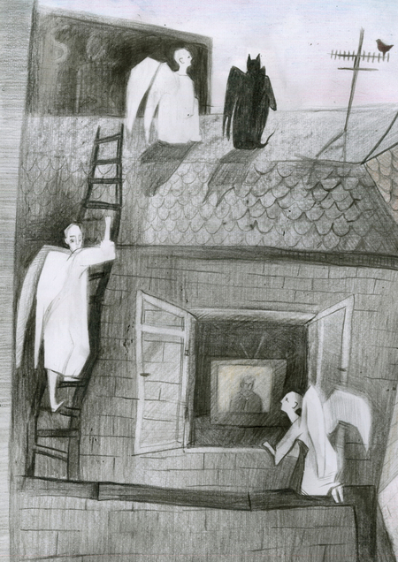 Серия из четырёх постер-комиксов, два из которых доведены до фигуратива, на тему постоянного присутствия в нашей повседневной жизни ангелов и бесят. Наблюдая за этими «божками», можно узнать много нового о нашем мире, об его устройстве и о характере тех невидимых сущностей, что неизменно следуют за нами, изучают нас, поют нам колыбельные во время сна.