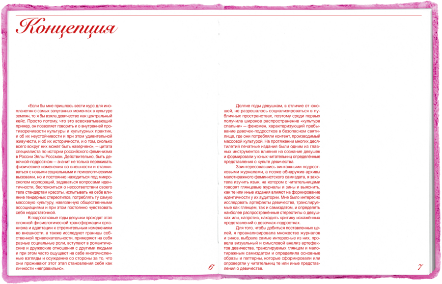 Визуальное исследование печатных изданий для девочек-подростков, основанное на анализе визуальных и смысловых артефактов девичества, транслируемых глянцевыми журналами и малотиражным самиздатом