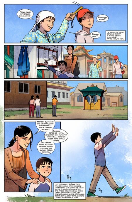 На первых страницах комикса уже можно заметить, что Алтан по национальности — бурят. И, что интересно, диалоги между персонажами происходят на традиционном бурятском языке, тем самым добавляя аутентичности и глубины к культурному контексту.