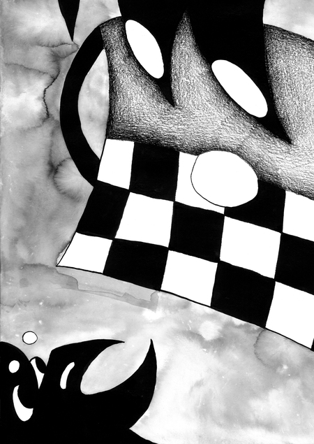 В серии иллюстраций, посвященных нарядной вороне, я хотела посмотреть на привычный образ в новом свете. Это представление птицы в рамках современного модного мира. Работа выполнена тушью и карандашом. Выбор материалов опирается на естественное оперение птицы, при этом я сочетала несколько техник, показывая многогранность образа — от заливки сплошным цветом, до текстурной штриховки.