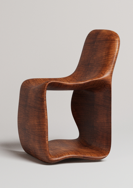 Диван разделен на три асимметричных части для составления различных пространственных композиций. Полая часть внутри стульев придает предметам из массива легкости, а также служит функциональной лежанкой для кошки. Также кошка может расположиться и на верхней части спинки стула.