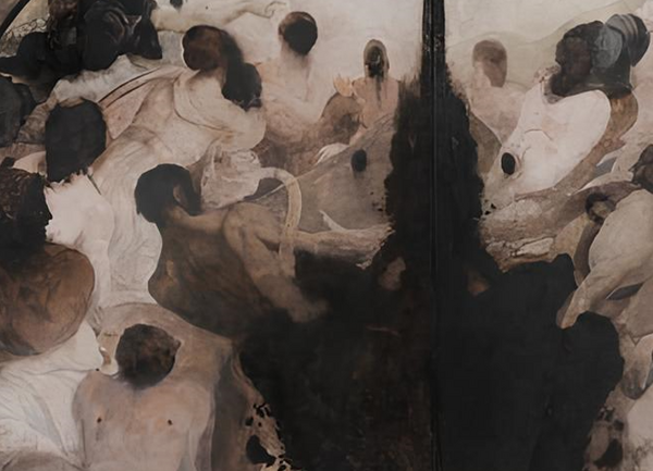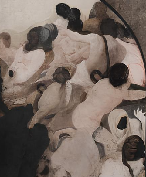 Композиции в стиле маньеризма характеризуются деструктивностью, эклектичностью и отсутствием определенных принципов организации формы. Маньеризм доводил до максимума проявления зла: боли, страданий, иррациональности поступков людей [2]. В 16 веке Италию охватил острый социальный и политический кризис, пронизывающий и творения ряда мастеров, воспринимающих этот кризис остро, как крушение устоев бытия и представлений о мире и человеке. Маньеристы выражают разочарование в действительности, в их искусстве образ человека наполняется ощущением смятения и тревоги. Такие черты видятся и в произведениях Николы Самори. Рассмотрим фреску из работы «Valle umana (Malafonte)» (Долина Людей (Малафонте)), которая была выставлена в берлинской галерее EIGEN + ART.