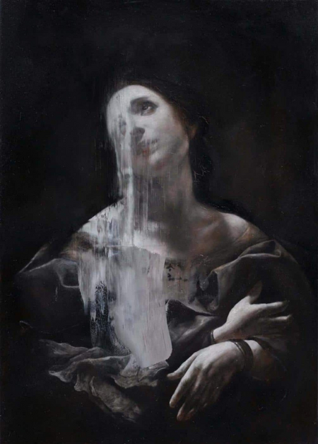 После рассмотрения влияния европейского искусства на творчество Николы Самори, следует перейти к изучению его эксперементальных техник, где сочетается созидание и деконструкция, форменное и бесформенное, мрачное и завораживающее. Художник возвращается к излюбленным сюжетам искусства XVI–XVII века, но не просто воспроизводя их с высокой точностью, а трансформируя через призму своих чувств. Начав фактически с точного воспроизведения работ прошлого, художник выражает свое концептуальное творчество через специфическое вмешательство в живописную материю, которое выливается в трехмерное — почти скульптурное — воплощение его работ [7]. Интервенции в виде царапин, соскрябывания, разломов, размазывания порождают постоянное столкновение между смазанными и четкими образами, их созиданием и деконструкцией. Эти деструктивные действия, совершаемые над живописной основой, могут быть интерпретированы как механизмы, характеризующие концептуальное творчество художника.
